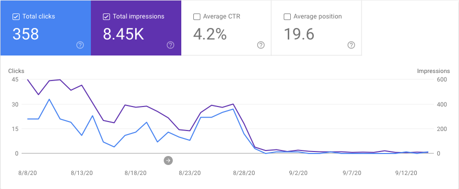Luego de unos días notarás en Google Search Console que el tráfico en el dominio anterior se reduce a cero y que el nuevo dominio hereda todo el tráfico: